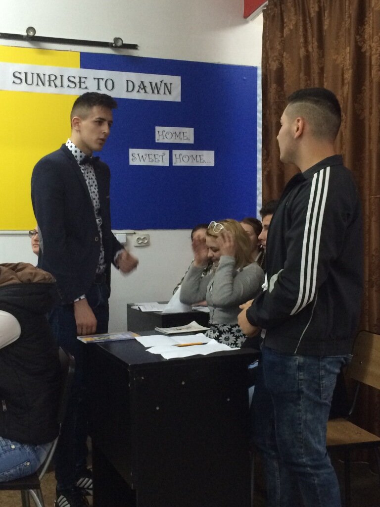 Vykdydami tarptautinio Erazmus+ projekto ,,Pasikeisk ir išgirsk jų balsą“ programą, mes, Kražių gimnazijos atstovai – pagrindinio ir vidurinio ugdymo skyriaus vedėja Živilė Šiaudvytienė, anglų kalbos vyr. mokytoja Rasa Rimidytė – Liekienė bei bibliotekininkė Jurgita Karpenkienė – balandžio 18 – 22 dienomis viešėjome Rumunijoje. Balandžio 18-osios popietę, tik nusileidus Bukarešto oro uoste, mus pasitiko lietuviams šiuo metų laiku neįprasta kaitra, net 29 laipsniai šilumos. Per šilti rūbai, nuovargis ir 6 valandų kelionė autobusu iki galutinio taško privertė sukaupti paskutines jėgas. Kelionės tikslą pasiekėme tik vėlų pirmadienio vakarą. Visi projekto dalyviai iš Italijos, Ispanijos, Turkijos ir Lietuvos apsistojome rytinėje šalies dalyje, Bacau mieste, kuriame gyvena apie 150 000 gyventojų. Tai pramoninis miestas, įkurtas istorinėje buvusios Moldovos kunigaikštystės teritorijoje. Turistų ši vietovė beveik nelankoma, nes nepasižymi nei gamtos grožiu, nei architektūra. Jo nepuošia įspūdingi pastatai, išpuoselėti parkai, vandens telkiniai. Laikas čia, rodos, seniai sustojo, vietiniai gyventojai išsaugojo savitą architektūrą, tradicijas. Kitą rytą mus pasitiko jau švelnesnė, pavasariu dvelkianti šiluma ir nuoširdūs vizito organizatoriai. Prie pusryčių stalo, susitikę ir pasilabinę su vietiniais ir kitų šalių projekto dalyviais, išvykome į Grigore Antipa mokyklą. Šeimininkai iškilmingai mus sutiko prie mokyklos durų. Direktorius ir jo pavaduotoja sveikino svečius, paspausdami kiekvienam ranką. Mokiniai, pasipuošę tautiniais rūbais, vaišino nacionaliniu rumunų pyragu ir druska. Įsikūrę projekto dalyviams skirtoje patalpoje, buvome pagerbti mokyklos direktoriaus, jo pavaduotojos ir projektą koordinuojančių mokytojų sveikinimo žodžiais. Susipažinome su trečiojo projekto susitikimo veiklomis, dalijomės įspūdžiais iš antrojo, kuris vyko Lietuvoje, Kražių gimnazijoje, lapkričio mėnesį. Kiekvienos šalies komanda pristatė, kokias veiklas įgyvendino iki trečiojo susitikimo. Daug dėmesio buvo skirta informacijai apie projekto viešinimą: darbą su Moodle platforma, tinklaraščio bei laikraščio kūrimą. Po sočių pietų mokyklos valgykloje dieną tęsėme stebėdami mokinių pasirodymą. Pagrindinė vaidinimo mintis – paauglių ir suaugusiųjų nesusikalbėjimas, tolerancijos stoka. Rumunų mokiniai scenoje suvaidintomis situacijomis ir dainomis perteikė savo žinutę „daugiau jokių distancijų“. Norėdami gerai jaustis turime stengtis suprasti ir gerbti vieni kitus, nesvarbu, ar tai mokinys ir mokytojas, ar vaikas ir mama. Vien buvimas vyresniu nesuteikia teisės negerbti jaunesnių. Pasibaigus mokinių pasirodymui, aptarėme jį su projekto partneriais, diskutavome apie žinutės aktualumą kitose šalyse. Baigiantis dienos veikloms, aptarėme rudenį planuojamą ketvirtąjį projekto susitikimą Ispanijoje. Visa antroji išvykos diena buvo skirta pažintinei ekskursijai po istorinę buvusios Moldovos kunigaikštystės teritoriją. Sustojome pasigrožėti istoriniu viešbučiu/restoranu, kuris buvo pastatytas 18 a., prie vieno iš tuo metu pagrindinių Europos kelių. Šioje vietoje išlaikytas autentiškas stilius, viduje įrengtas muziejus. Čia galima paragauti tradicinio rumunų maisto ir gėrimų, įsigyti suvenyrų. Mūsų aplankytame regione, anot ekskursijos organizatorių, stūkso per tūkstantis vienuolynų. Apžiūrėti spėjome tik vieną. Tvyranti ramybė, rimtis ir susikaupimas laikinai pritildė įvairiakalbės grupės šurmulį. Rumunija garsėja viduramžių pilių gausa ir didybe. Tuo įsitikinti galėjome aplankę vieną iš jų, įsikūrusią Targu Neamt mieste. Tai 14 a. pastatytas įspūdingas savo istorija, architektūra ir gamtovaizdžiu statinys. Maršrutą baigėme jaukiame, 15 a. įkurtamePiatra Neamtmieste, apsuptame kalnų. Vaikštinėjome jaukiomis senamiesčio gatvelėmis, apžiūrėjome vietinę architektūrą, grožėjomės miesto panorama, funikulieriumi pakilę gerokai virš stogų. Paskutinę viešnagės dieną, sugrįžę į mūsų lankomą mokyklą, atlikome įdomiausią dienos užduotį – kartu ruošėme rumunų tradicinius varškės pyragaičius. Pasigirsiu, kad mūsų komanda buvo greičiausia. Turėjome galimybę susipažinti su rumunų virtuve. Maisto gaminimo metu netrūko geros nuotaikos. Kol pyragaičiai kepė, mes apžiūrėjome mokyklos patalpas: klases, administracines patalpas, stendus. Klausėmės pasakojimo apie rumunų švietimo sistemą, lyginome skirtumus ir panašumus. Oficialiąją dieną užbaigėme ekskursija poBacaumiestą. Aplankėme nacionalinį botanikos ir archeologijos muziejų, vieną iš seniausių miesto bažnyčių. Nors kelionė į šią šalį ilga ir varginanti, jai baigiantis vienareikšmiškai nutarėme, kad mūsų komandai ji buvo naudinga ir įdomi. Galėjome palyginti skirtingų šalių jaunimo problemas, kultūrinius skirtumus, pagilinome užsienio kalbų žinias, o svarbiausia – dar labiau sutvirtinome Erasmus+ projekto dalyvių bendradarbiavimą. Rumunijos atstovų dėka tinkamai suplanuoto ekskursijų ir pažintinės veiklos laiko bei organizacijos praleidome prasmingą veiklos ir aktyvaus poilsio savaitę.