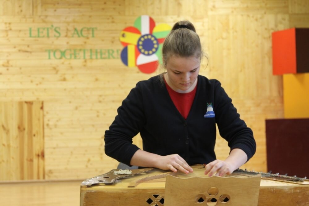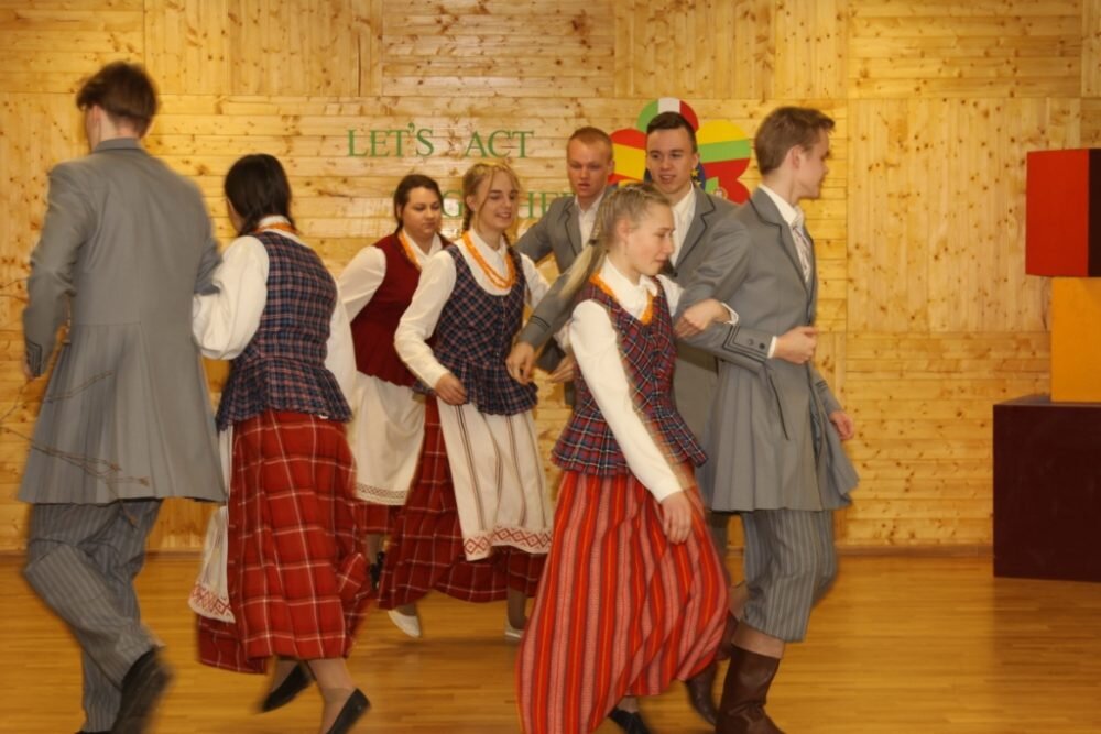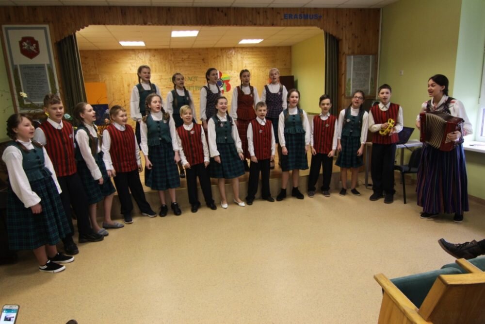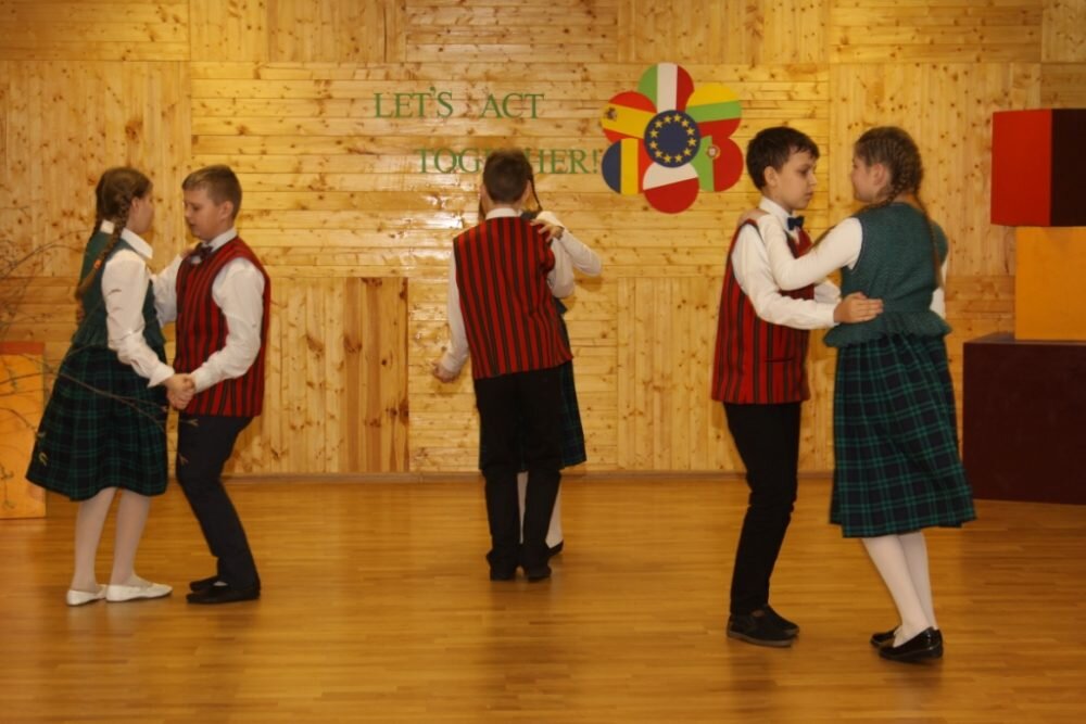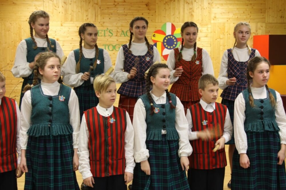 Antrą tarptautinio projekto dieną gimnazijos koordinacinė grupė pristatė Lietuvos etninės kultūros paveldą. Mokytoja E. Kvietkuvienė parengė pranešimą apie valstybės pastangas saugoti ir puoselėti liaudies kūrybą. Mokytojos E. Dambrauskienės parengti projekto dalyviai mokiniai dainavo dvi dainas, L. Karpenkaitė ir N. Urbonaitė kankliavo – jų mokytoja A. Vilimaitė-Karyznienė taisyklinga anglų kalba pasakojo apie šį unikalų lietuvių muzikos instrumentą. Lietuvių liaudies šokius šoko 4 ir 3g klasių mokiniai. Pirmokas J. Navickis pasakojo istoriją gimtąja kalba. Istorikė V. Andrulienė su grupe mokinių mokytojas iš Italijos, Ispanijos, Portugalijos, Rumunijos, Lenkijos įtraukė į liaudies žaidimus. Be abejo, viešnios išgirdo, kaip etnine kultūra mokiniai motyvuojami, kaip liaudies kūryba integruojama į ugdymo procesą. Kitaip tariant, sužinojo, pamatė ir pačios aktyviai dalyvavo.